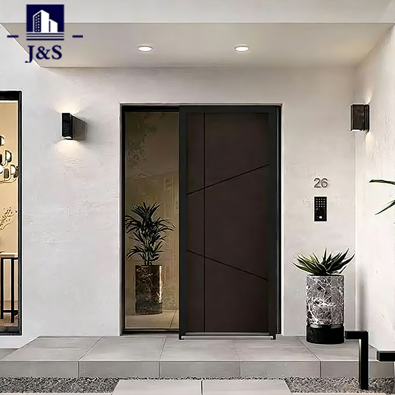 हा एक आधुनिक ॲल्युमिनिअम धातूचा सुरक्षितता दरवाजा आहे जो निवासी प्रवेशमार्गांसाठी डिझाइन केलेला आहे, जो मजबूत सुरक्षेसह आकर्षक सौंदर्यशास्त्र एकत्र करतो. खोल मॅट नेव्ही ब्लूमध्ये पूर्ण, यात चार आडव्या पॉलिश केलेल्या धातूच्या पट्ट्यांसह किमान पॅनेलची रचना आहे जी व्हिज्युअल कॉन्ट्रास्ट आणि स्ट्रक्चरल मजबुतीकरण जोडते. दोन उंच, अरुंद फ्रॉस्टेड काचेच्या साईडलाइट्सने झाकलेला, दरवाजा नैसर्गिक प्रकाशाच्या प्रसारणाला गोपनीयतेसह संतुलित करतो, तर अतिरिक्त-लांब उभ्या स्टेनलेस स्टीलचे हँडल प्रीमियम पकड आणि समकालीन आकर्षण प्रदान करते. उच्च-शक्तीच्या ॲल्युमिनियम मिश्र धातुसह बांधलेले, ते उत्कृष्ट गंज प्रतिरोधक आणि टिकाऊपणा देते, ज्यामुळे ते बाहेरच्या वापरासाठी आदर्श बनते. स्वच्छ रेषा आणि औद्योगिक-चिक शैली घराचे कर्ब अपील उंचावते, तर त्याचे ठोस बांधकाम कौटुंबिक घरांसाठी आधुनिक सुरक्षा मानकांशी संरेखित, सक्तीच्या प्रवेशापासून विश्वसनीय संरक्षण सुनिश्चित करते.