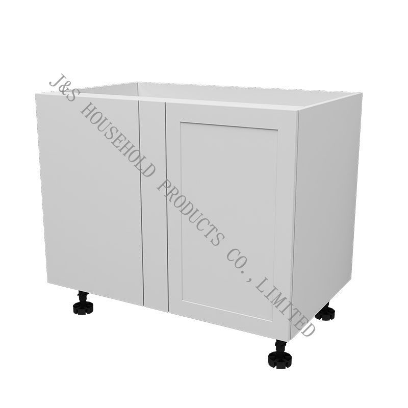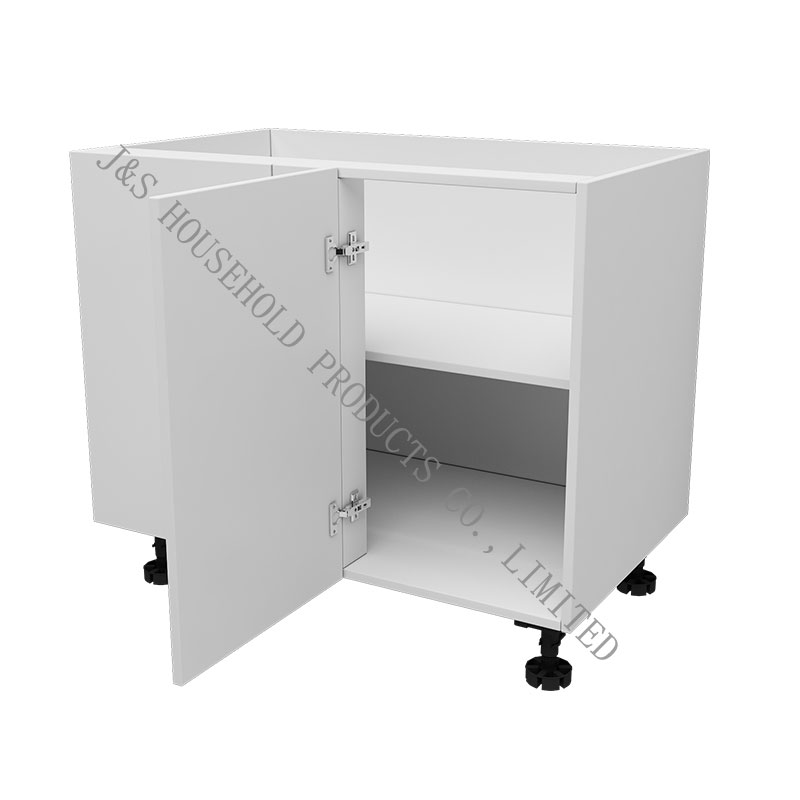 J&S सप्लाय मॉड्युलर फ्लॅट पॅक किचन ब्लाइंड कॉर्नर बेस. ब्लाइंड-कॉर्नर बेस कॅबिनेट हे कॅबिनेट आहेत ज्या कोपऱ्यात दोन कॅबिनेट रन एकत्र येतात आणि कॅबिनेटचा एक भाग त्याच्या शेजारी लपवलेला असतो. लपविलेले भाग कोपऱ्यात जागा न देता स्टोरेज म्हणून वापरले जातात.