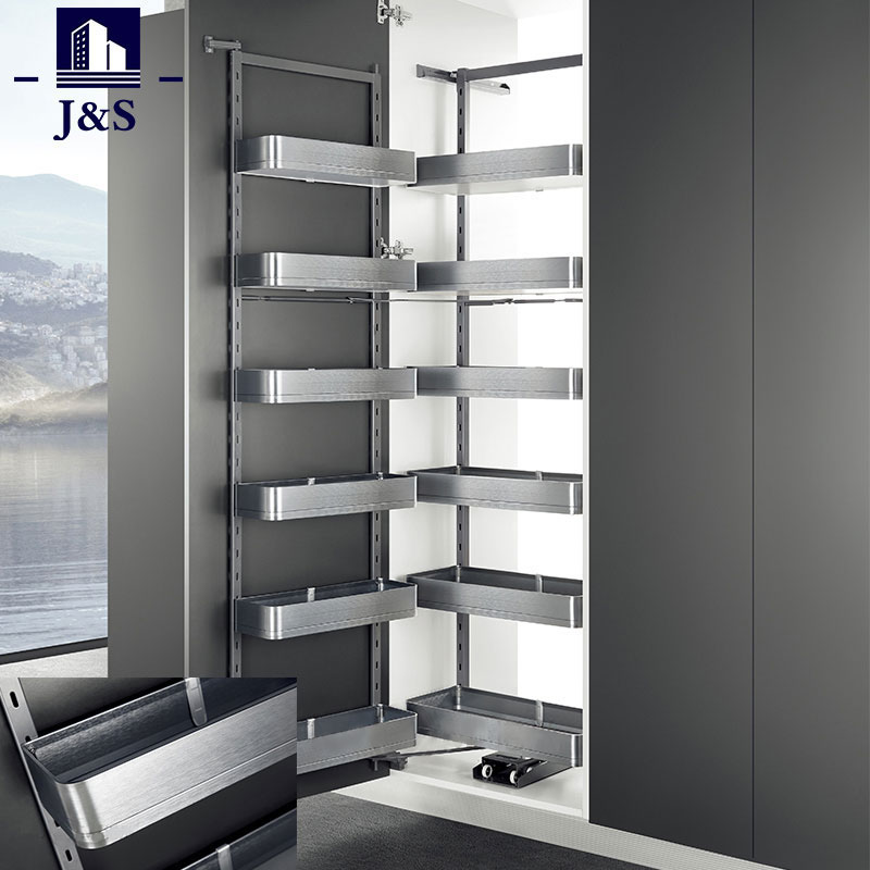 सॉफ्ट-स्टॉप टॉल लार्डर ऑर्गनायझर पुल आउट पॅन्ट्री युनिट बास्केट दिसल्यापासून, विविध कार्ये आणि शैली हळूहळू विकसित झाल्या आहेत, ज्यात प्रामुख्याने मसाला पुल बास्केट, बाउल पुल बास्केट, कॉर्नर पुल बास्केट, ड्रॉवर पुल बास्केट, उंच आणि खोल पुल बास्केट इ. फायदे अजूनही प्रत्येकाद्वारे ओळखले जातात.