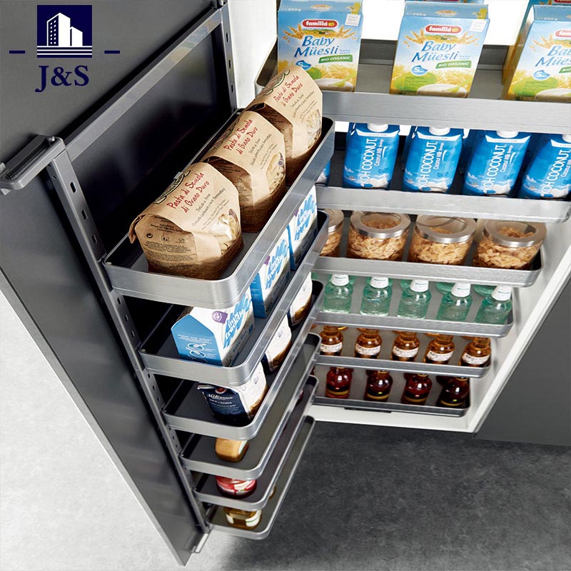 सॉफ्ट क्लोज रिव्हॉल्व्हिंग टॉल युनिट पुल आउट पॅन्ट्री ऑर्गनायझर किचन स्टोरेज